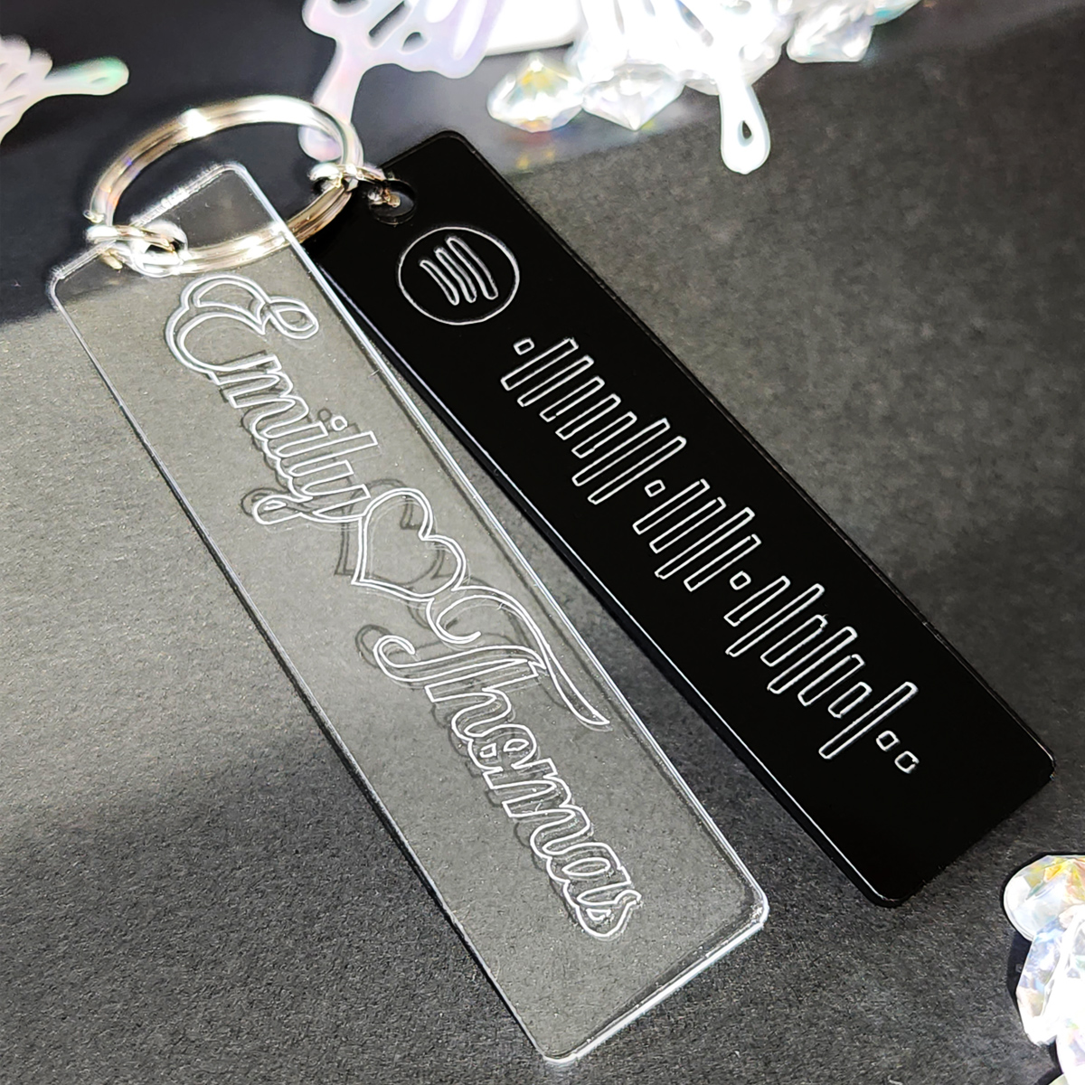 Because some connections are meant to be cherished in every note and every name, we introduce to you our engraved Spotify + Names keychain.