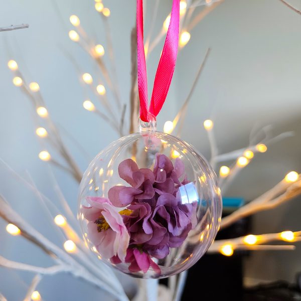 Made with an 6 cm bauble and filled with flowers.