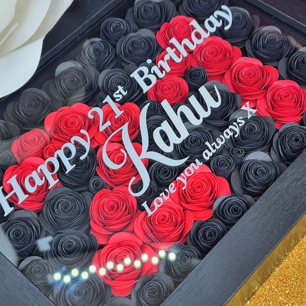 Made with beautiful handmade roses, it’s available in two sizes and three colour options. You can even personalise it with a special message of your choice.