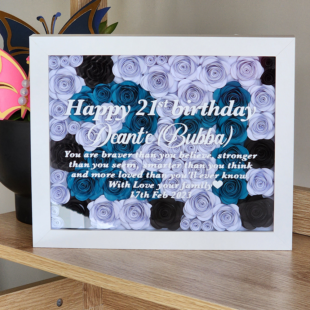 Could not be happier with my order from Handmade By Artsya. I got a rose number frame (black background with blue roses for the numbers) as a gift for my partner’s 21st and it turned out absolutely stunning. The colors pop so beautifully, the detail is amazing, and you can tell it’s been made with real care.